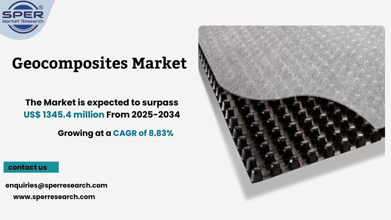 According to SPER market research, ‘Global Geocomposites Market Size- By Function, By Application - Regional Outlook, Competitive Strategies and Segment Forecast to 2034’ state that the Global Geocomposites Market is predicted to reach 1345.4 million by 2034 with a CAGR of 8.83%.