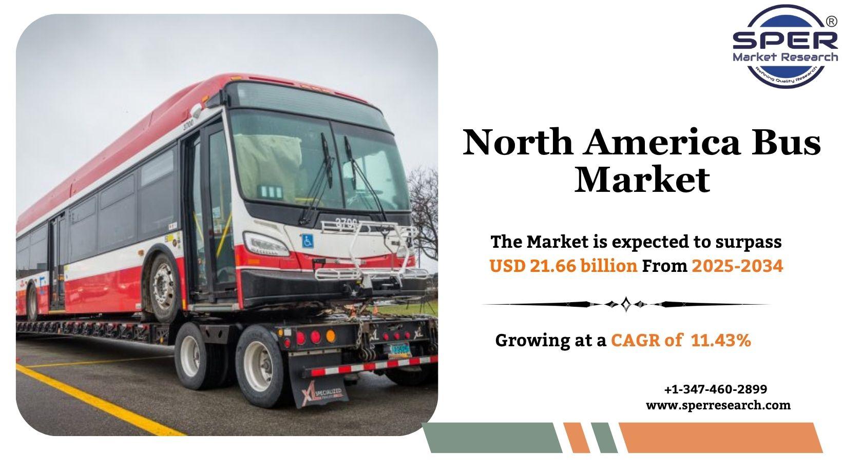 According to SPER Market Research, ‘North America Bus Market Size- By Type, By Fuel, By Seat Capacity, By Application - Regional Outlook, Competitive Strategies and Segment Forecast to 2034’ the North America Bus Market is estimated to reach USD 21.66 billion by 2034 with a CAGR of 11.43%.