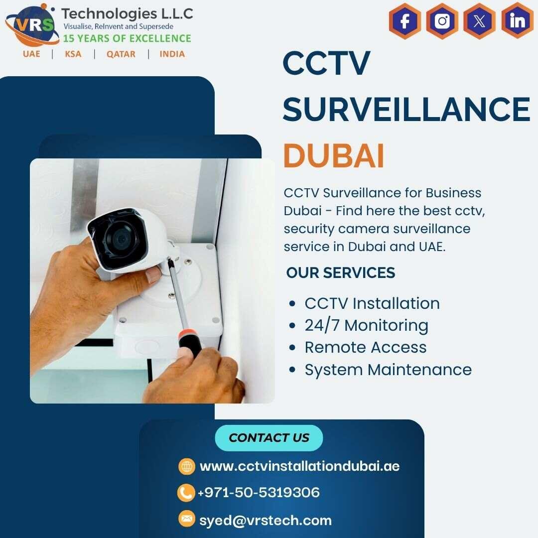 Secure your premises with advanced CCTV Surveillance Dubai solutions from VRS Technologies LLC. We offer professional camera installation, monitoring, and maintenance for businesses and homes. Stay protected 24/7 call +971505319306 today!